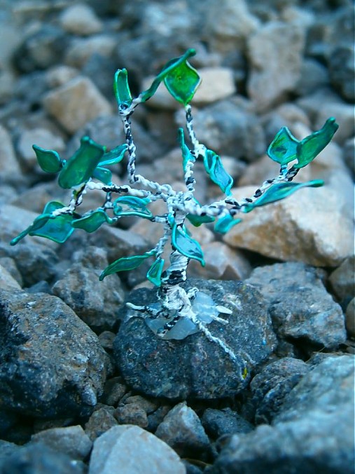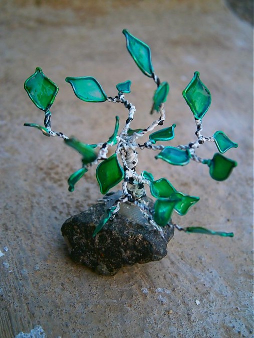 Lístky sú výrobné tajomstvo :D, podklad tvorí skala a základ tvorí drôtik nafarbený akrylovými farbami :)