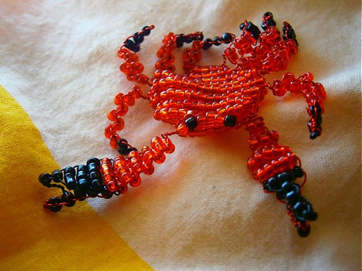 Ahoj! Dovoľte aby som sa vám predstavil. Som rak Hugo a som vyrobený z korálok - rokajlov. Možno ma prerobiť na kľúčenku.